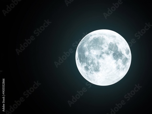 Fototapeta premium A brilliant full moon dominates the dark night sky, its craters and texture...