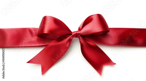 © rehan, Fototapeta premium A brilliant red ribbon bow with a smooth satin texture.