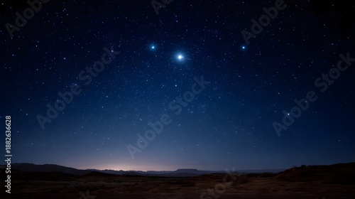Fototapeta premium A brilliant starry night sky illuminates a vast dark desert landscape under...