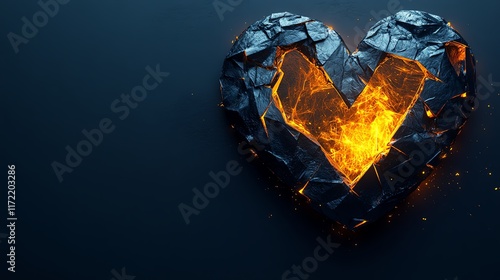 Fototapeta premium A broken heart with glowing fire inside.