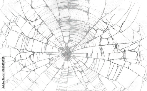 © Angrysakib, Fototapeta premium A broken screen with intricate spiderweb cracks radiating from a central impact point