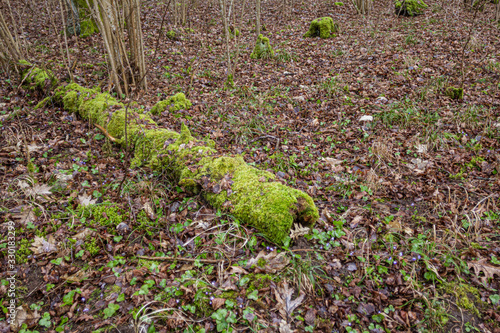 © Artis, Obraz premium a broken tree in a forest overgrown with moss