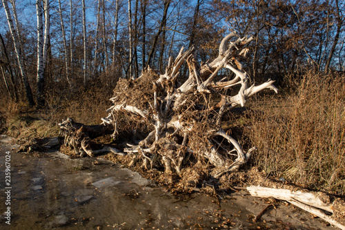 © Sergey, Obraz premium a broken tree root on the sunset
