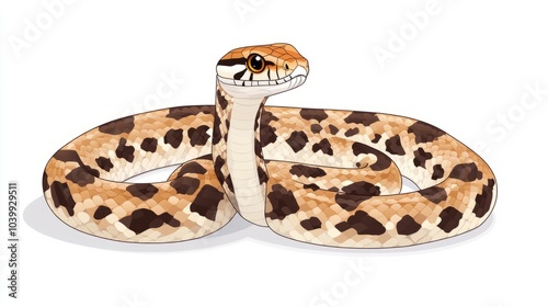 © TI3ee, Fototapeta premium A brown and tan snake with black spots curled up in a coil, looking directly at the viewer.