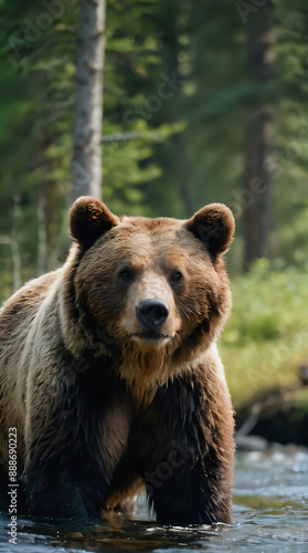 © Masum, Fototapeta premium a brown bear that is walking in the water