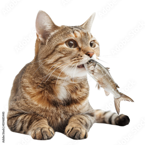 © PNG Aom.WingWon, Fototapeta premium A brown cat has a fish in its mouth.