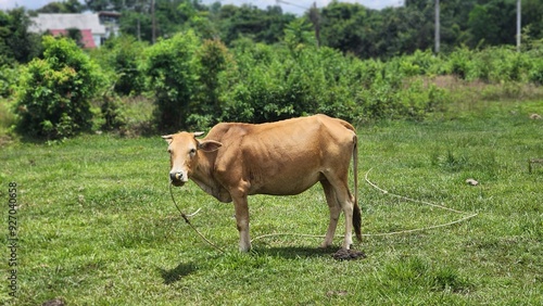 © Rachata, Fototapeta premium a brown cow in the grassfield in Thailand