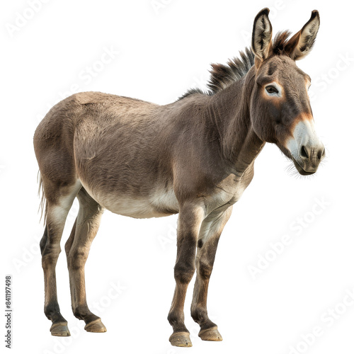 Fototapeta premium A brown donkey stands in front of a white background