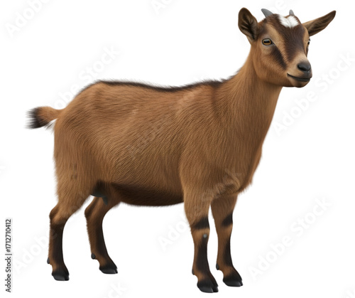 © 0Ghost0, Fototapeta premium A brown goat standing on a white background.
