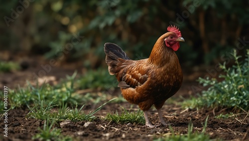 © claudunia, Fototapeta premium A brown hen, standing calmly.