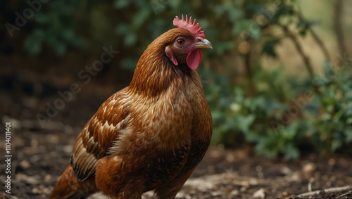 © claudunia, Fototapeta premium A brown hen, standing calmly.