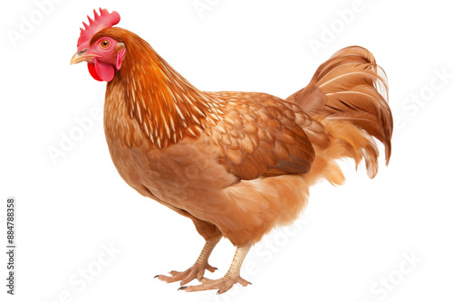 © Prompt2image, Fototapeta premium A brown hen with a red comb and wattle stands on a white background