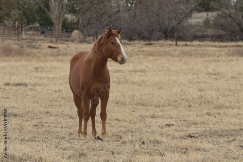 © Justin, Obraz premium A brown horse stands in a field