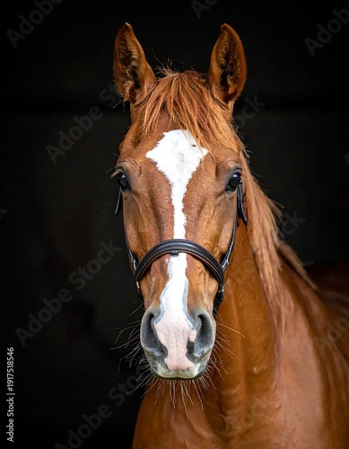 © Rendang, Fototapeta premium A brown horse with a white stripe on its face