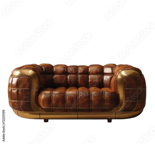 © ThaiAi, Obraz premium a_brown_leather_sofa_with_golden_frames