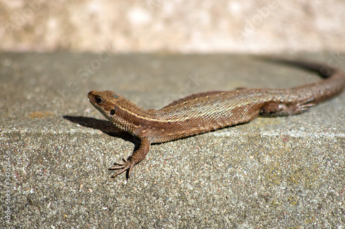 © Дмитрий Железнов, Naklejka premium A brown lizard is lying on a rock