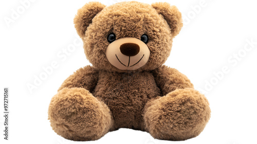 © Micro, Obraz premium A brown teddy bear rests on a black backdrop, emphasizing its cuddly texture and inviting demeanor.