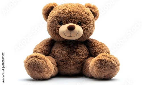 © Micro, Fototapeta premium a brown teddy bear sitting on a white surface