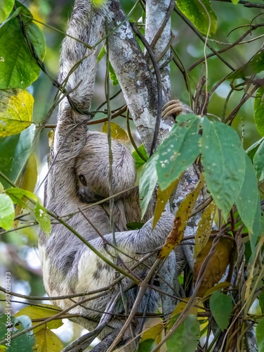 Fototapeta premium A brown-throated sloth (Bradypus variegatus) in the Amazon rainforest near...