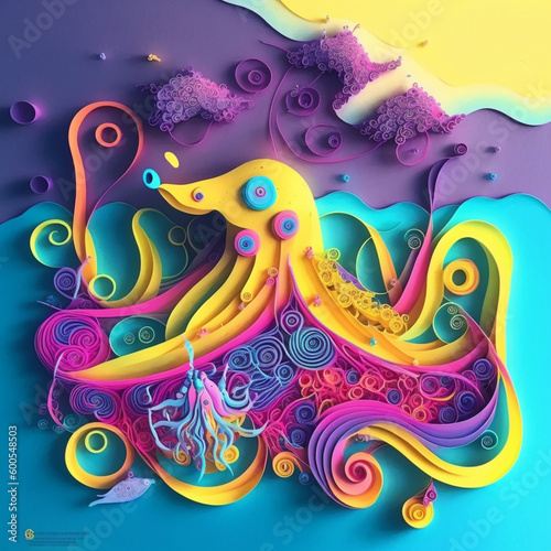 Obraz premium A brutalist metal Yellow Submarine vivid psychedeli, Generative AI