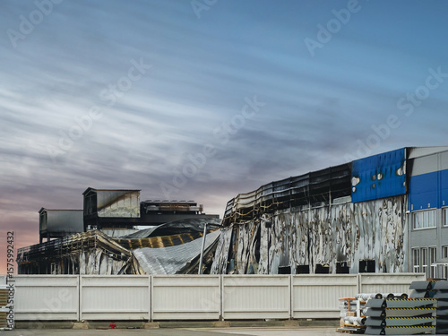 © Andrii_Abriutin, Fototapeta premium A building ravaged by fire, with extensive damage to its structure.