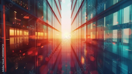 © NiK0StudeO, Obraz premium A building with a large window that is reflecting the sun