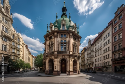 © Etverk Illustration, Fototapeta premium A building with a tower Generative AI