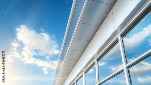 © Space Priest, Fototapeta premium A building with a white roof and windows