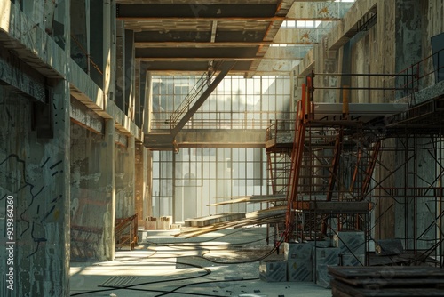 Fototapeta premium A building with scaffolding and scaffolding on the walls, ideal for...