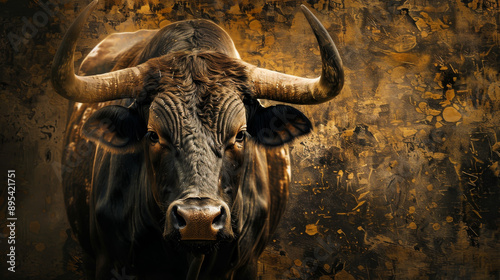 Naklejka premium A bull as a symbol of strength and resilience, with muscular features...