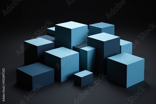 © haiqiang, Fototapeta premium a bunch of cubes on a black background
