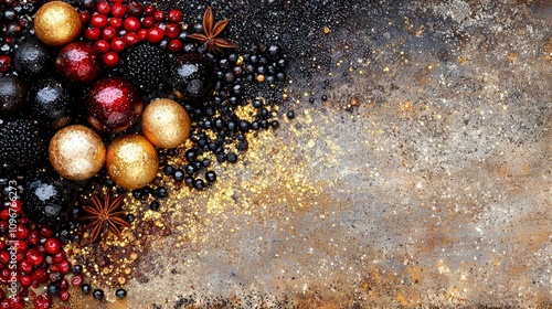 © Ilona, Fototapeta premium A bunch of different colored ornaments on a metal surface