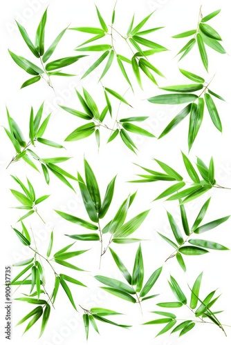 Naklejka premium A bunch of fresh green leaves arranged on a clean white background