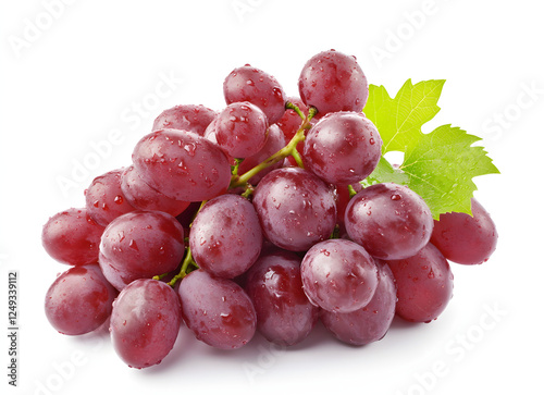 © Jannik, Fototapeta premium A bunch of fresh, purple grapes isolated on a white background