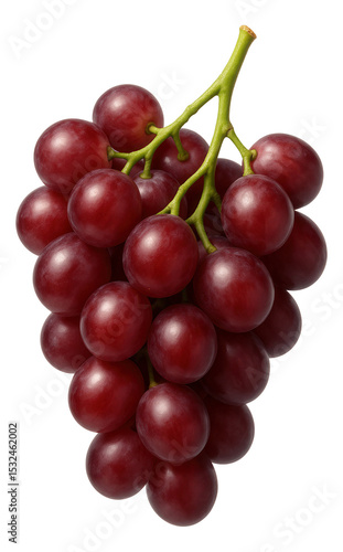 © Sergey, Fototapeta premium A bunch of fresh red grapes with glossy skins and green stems.