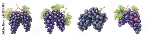 Fototapeta premium A bunch of grapes, fruit element, watercolor illustration, deep purple,...