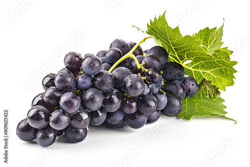 © Ninh, Fototapeta premium a bunch of grapes with a leaf on a white surface