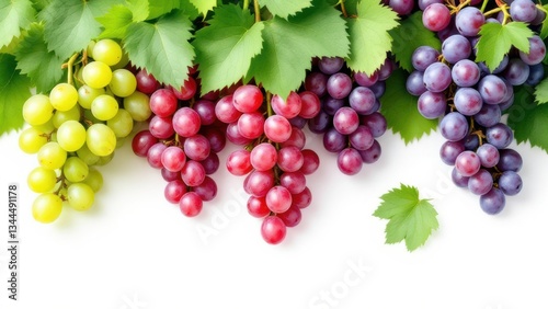 © Imam, Obraz premium A bunch of grapes with leaves hanging on a white background