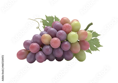 Obraz premium A bunch of grapes with vibrant hues of pink, purple, and green, glistening...
