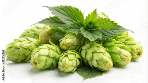 © Alexander, Obraz premium A bunch of green leaves with a few small green flowers on top