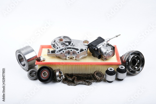 Fototapeta premium a bunch of new car parts on a white background