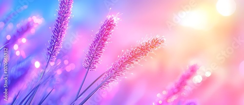 Naklejka premium A bunch of purple flowers with a bright blue sky in the background