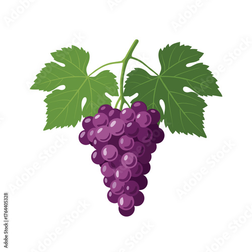 © Arend, Obraz premium A Bunch of Ripe Purple Grapes with Green Leaves.