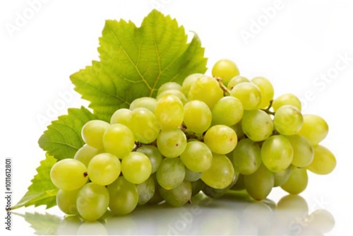 © mamo studios, Fototapeta premium A bunch of ripe white wine grapes with a stem, isolated on a white background