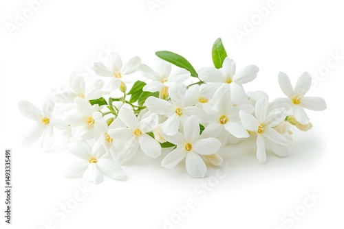 © nabakumar, Obraz premium A bunch of small white jasmine flowers with star-shaped petals, isolated on a white background