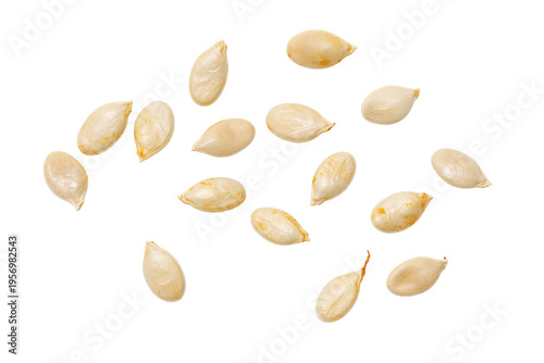 © schankz, Obraz premium A bunch of white seeds are scattered across a white background