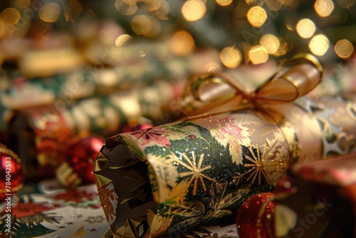 © Fotograf, Fototapeta premium A bunch of wrapped presents on a table, perfect for holiday concepts