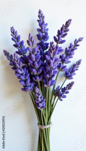 Naklejka premium A bundle of branches adorned with dried lavender purple blue flowers, arrangement, botanical
