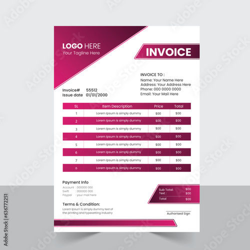 © Farhana, Fototapeta premium a bundle of 1 templates of different colors a4 Invoice template, modern businessInvoice template, abstract business invoice and creative design, IT company invoice and editable vector template