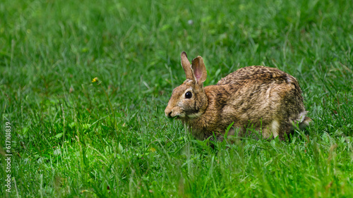 Fototapeta premium A bunny rabbit that visits our yard each morning has been given the name...